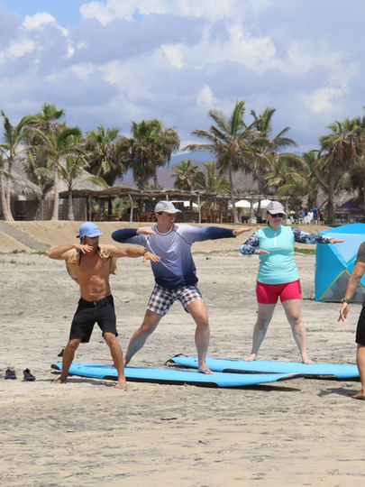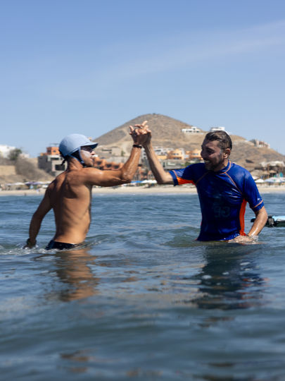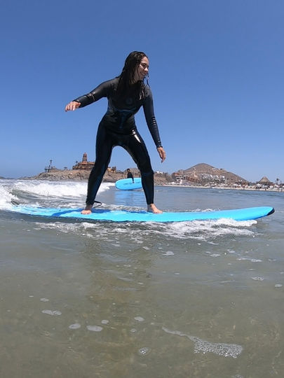 15 years giving surf lessons starting in Argentina, then Mexico, Spain, Portugal, and now in Baja California with the mission of sharing their knowledge to other people so they can also enjoy nature as much as we do in a safe way.